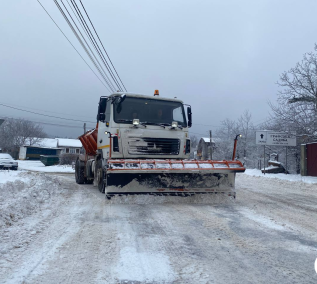 Через сильний снігопад у Чернівцях техніка та працівники комунальних служб вийшли на маршрути ще до світанку.