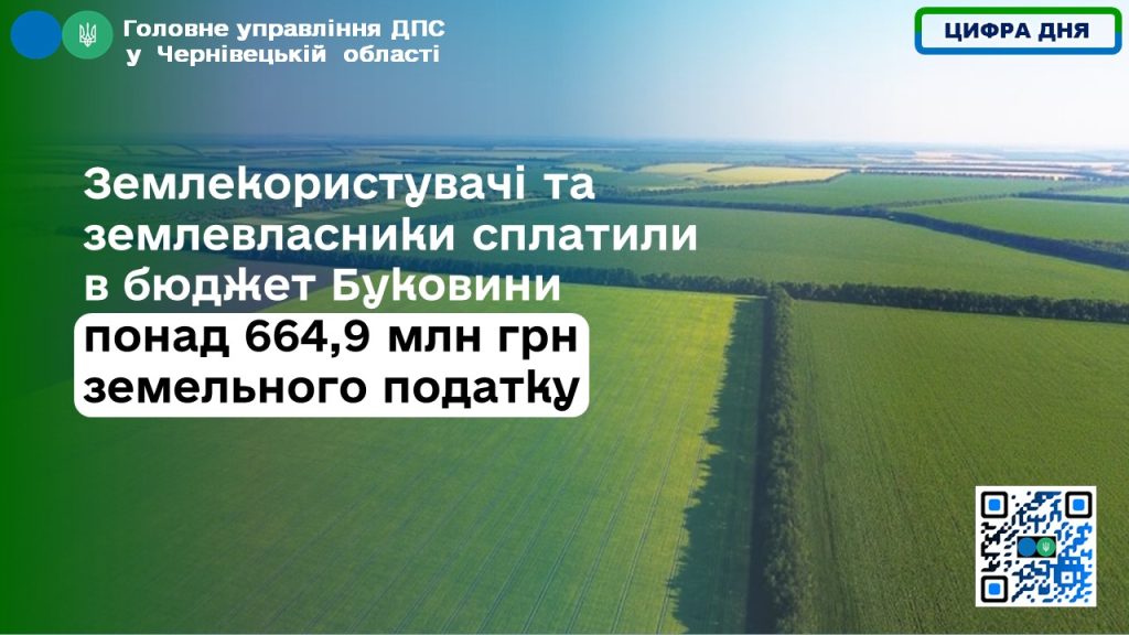У січні-листопаді 2025 року власники землі та землекористувачі Буковини перерахували до бюджетів громад понад 664,9 млн грн земельного податку.