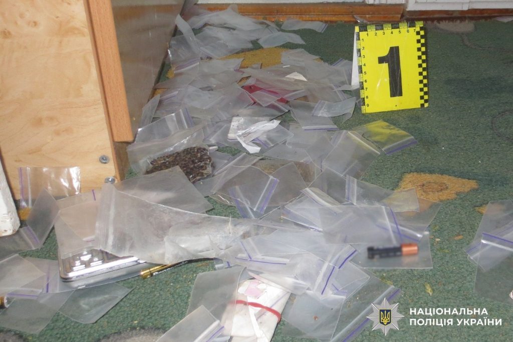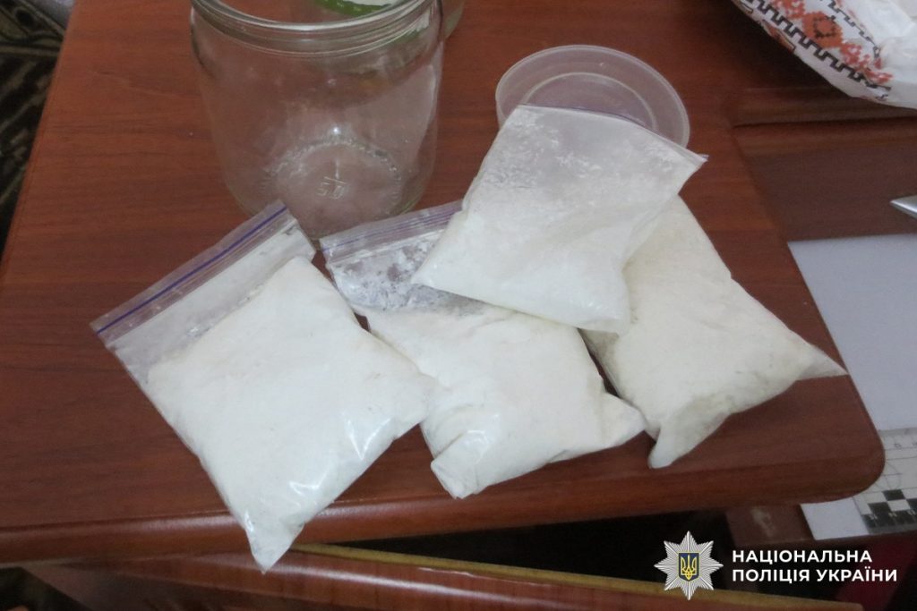 Також провели санкціонований обшук за місцем проживання наркодилера, під час якого виявили та вилучили зіп-пакети із вмістом речовин кристалоподібного та рослинного походження, пакувальні матеріали, мобільні телефони, кошти та інші докази протиправної діяльності.