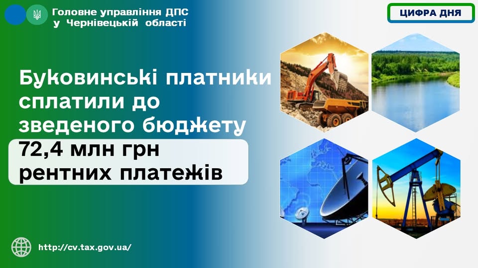 Буковинські платники сплатили понад 72 мільйони гривень рентних платежів