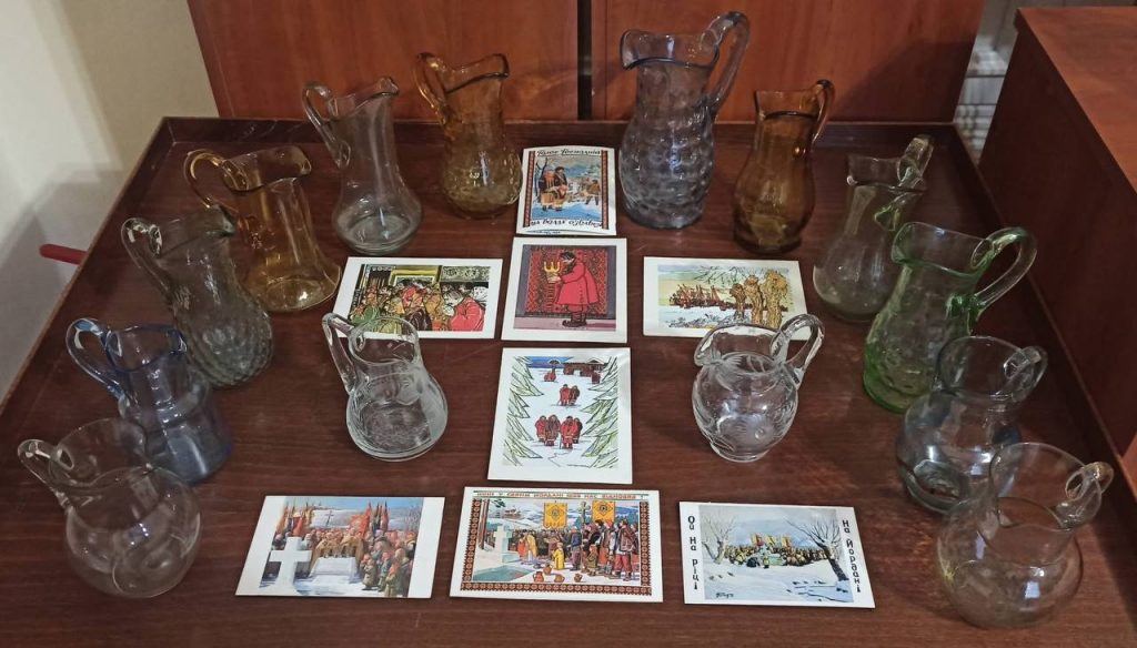 Експозиція налічує близько 30 предметів із приватної колекції Юрія Миська. Серед представлених експонатів — скляні штофи, збанки та графини початку ХІХ — початку ХХ століття, виготовлені в гутах Красноїльська, що були одним із провідних осередків гутного склоробства на Буковині. Також відвідувачі можуть побачити керамічні збанки кінця ХІХ — початку ХХ століття.