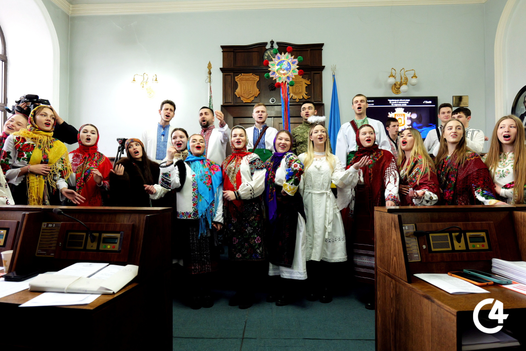 Напередодні свят до сесійної ради завітала коляда. Різдвяні співи розбавили офіційну атмосферу засідання — більше кадрів сюжеті.
