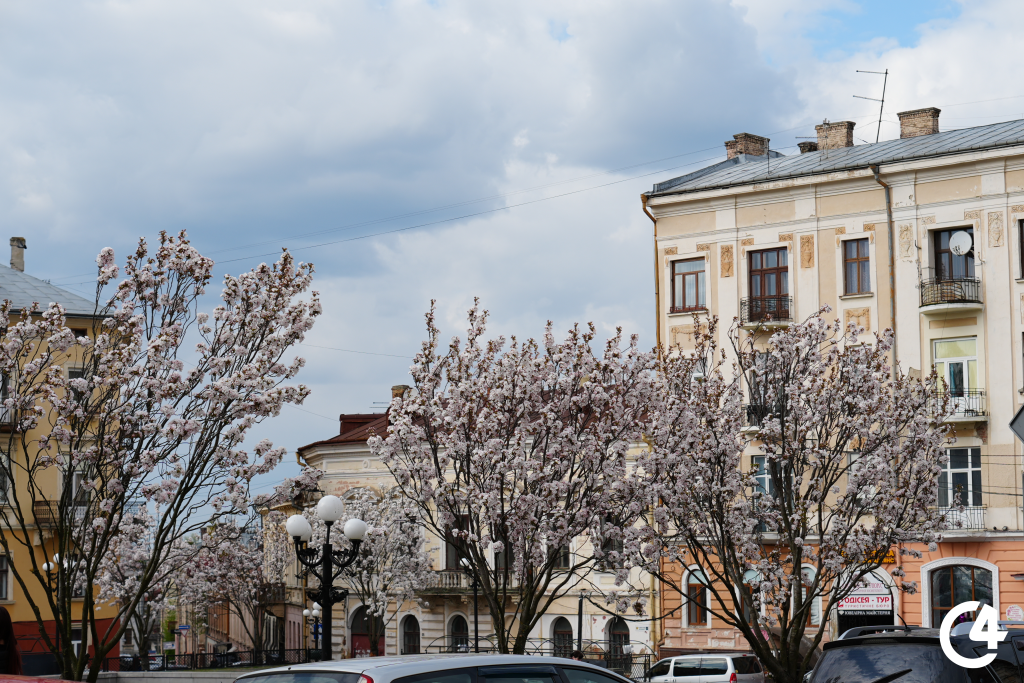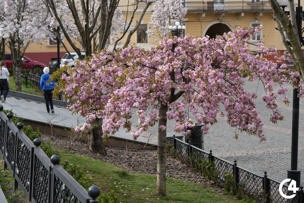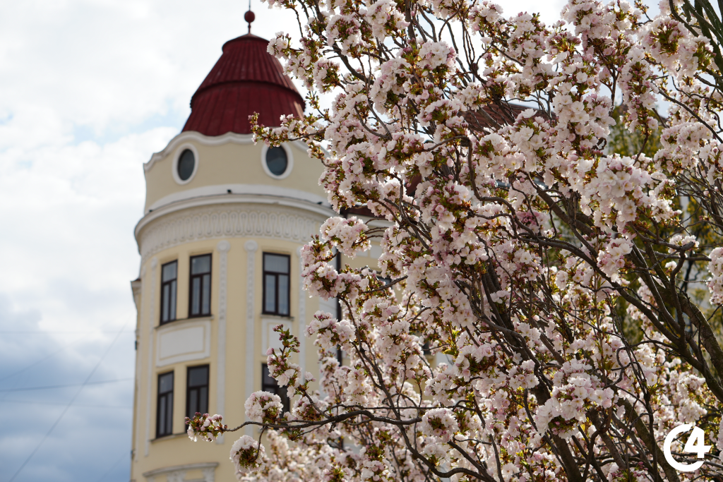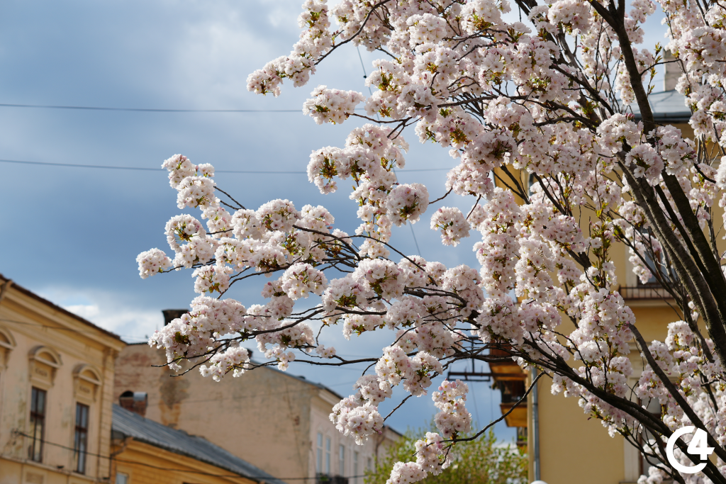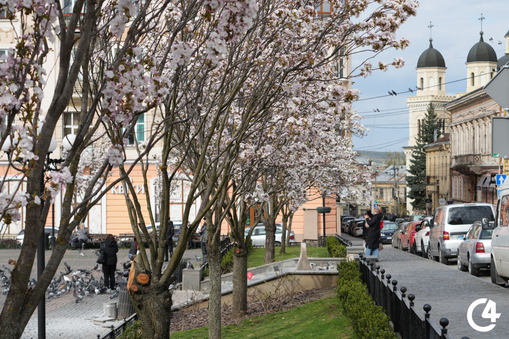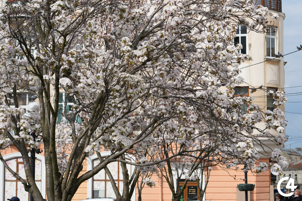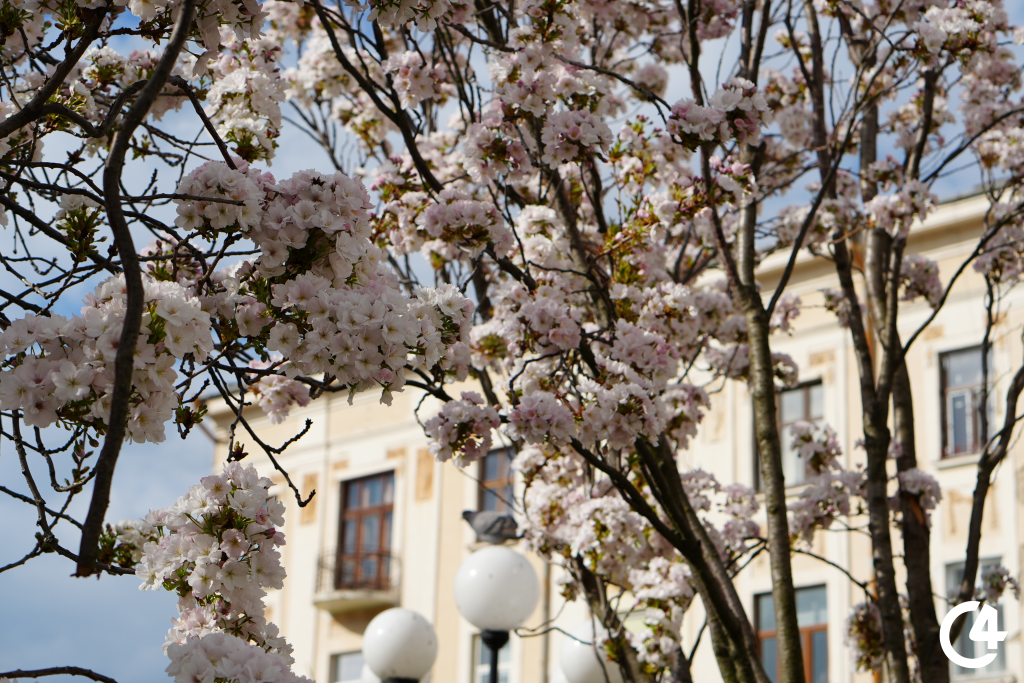 У Чернівцях зацвіли сакури. Їхнє цвітіння, зокрема, можна спостерігати на площі Філармонії.