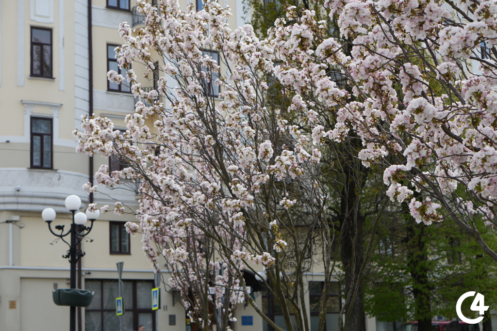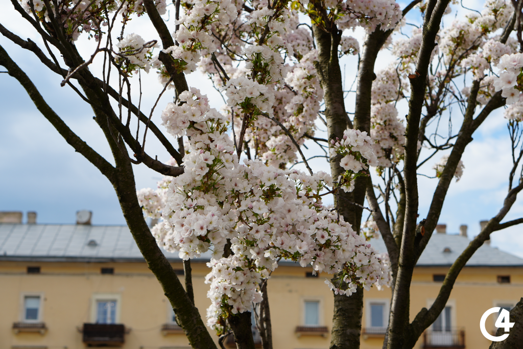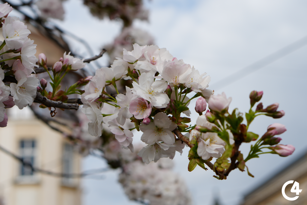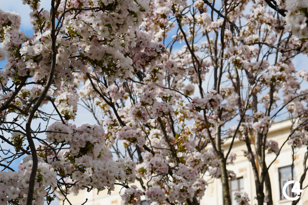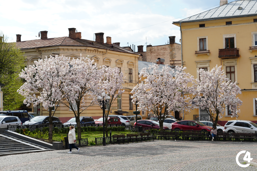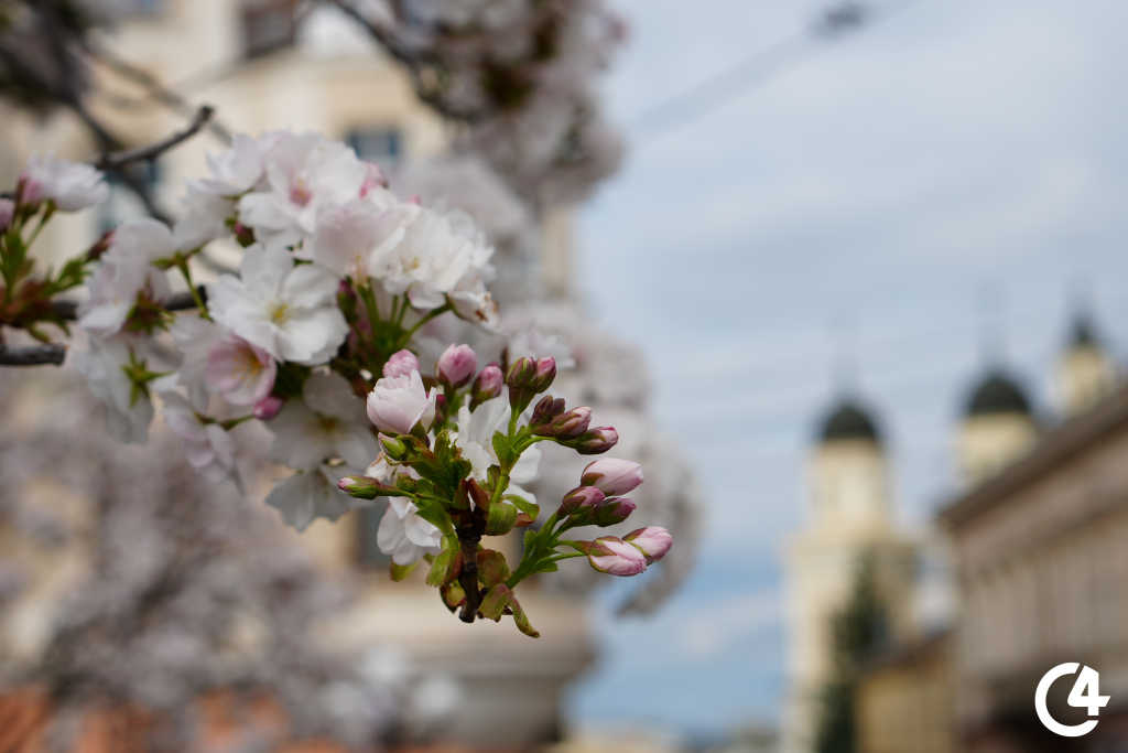 У Чернівцях зацвіли сакури. Їхнє цвітіння, зокрема, можна спостерігати на площі Філармонії.