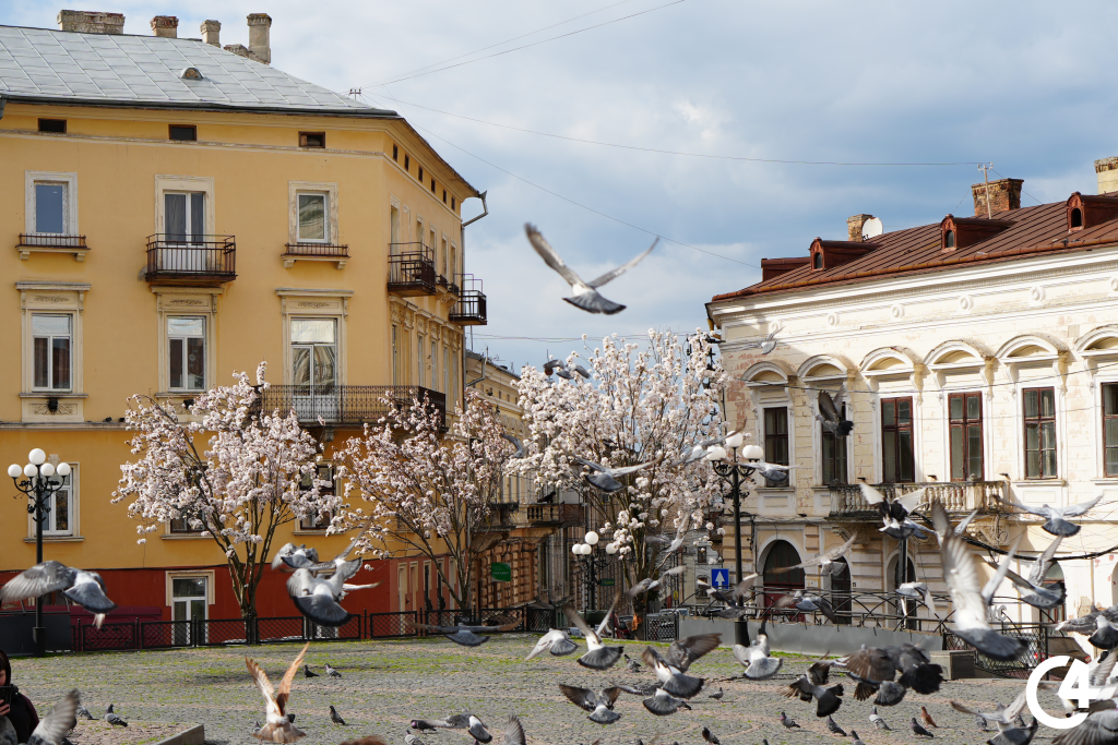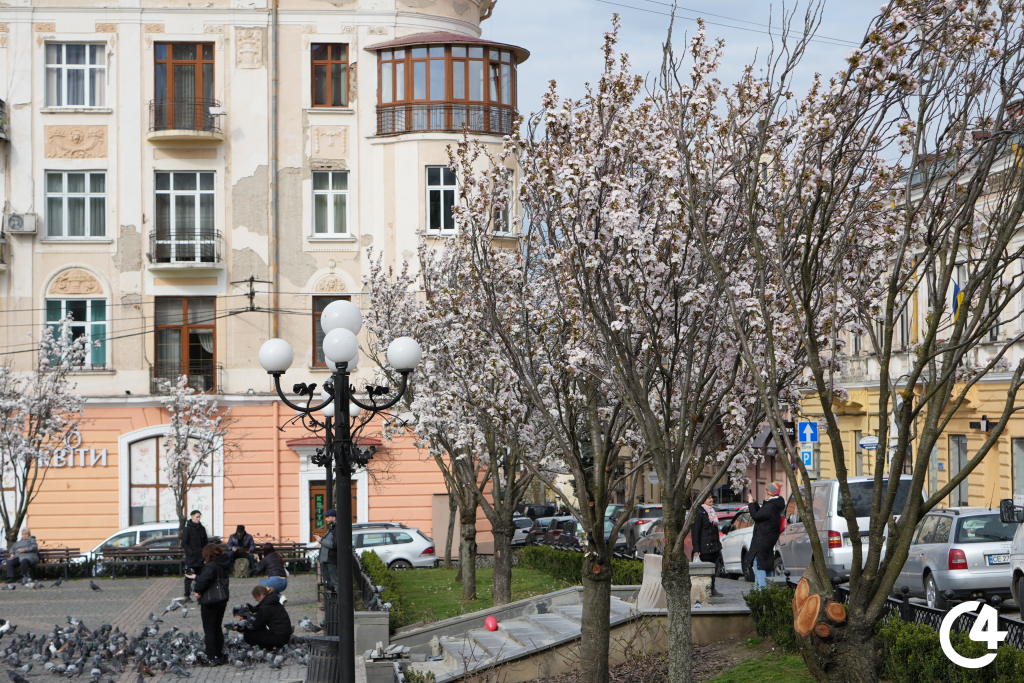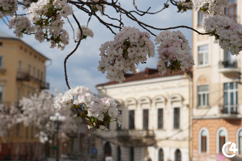 Цвітіння сакур на площі Філармонії в Чернівцях (фото)