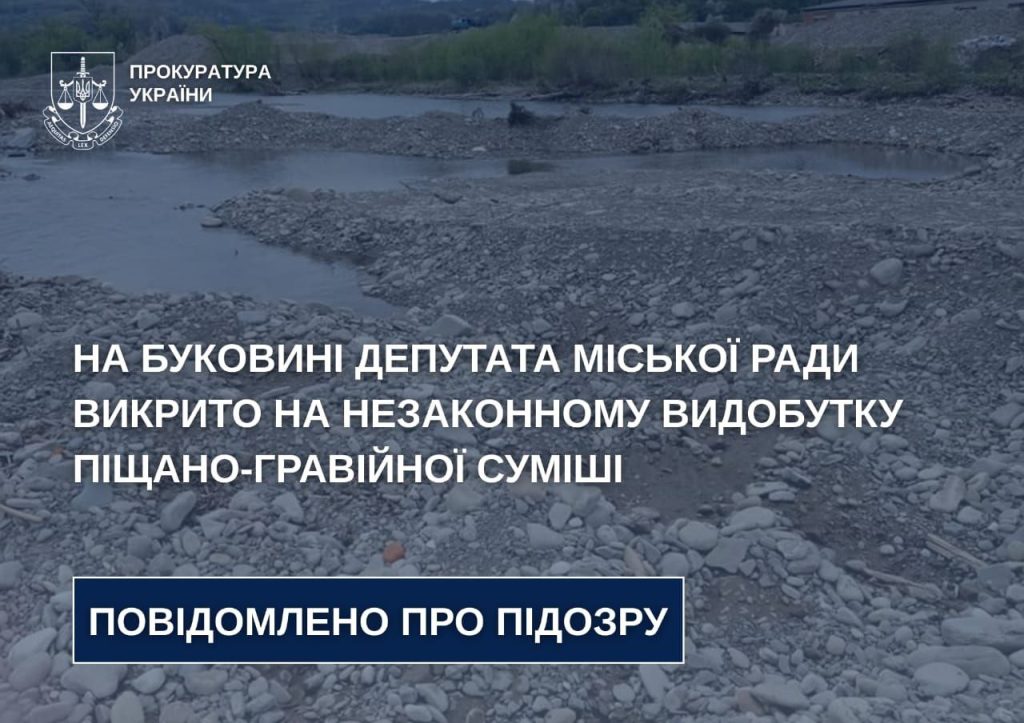 За даними слідства, депутат без необхідних дозволів здійснив самовільний видобуток піщано-гравійної суміші з котловану русла річки Черемош, що розташована на території Вашківецької громади Вижницького району.
