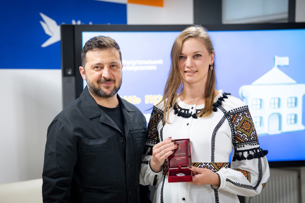 Під час урочистої зустрічі з педагогами почесне звання «Заслужений вчитель України» особисто від Президента отримала Олеся Гавриляк — учителька технологій опорного закладу «Мигівський ліцей» та переможниця конкурсу «Учитель року–2025».