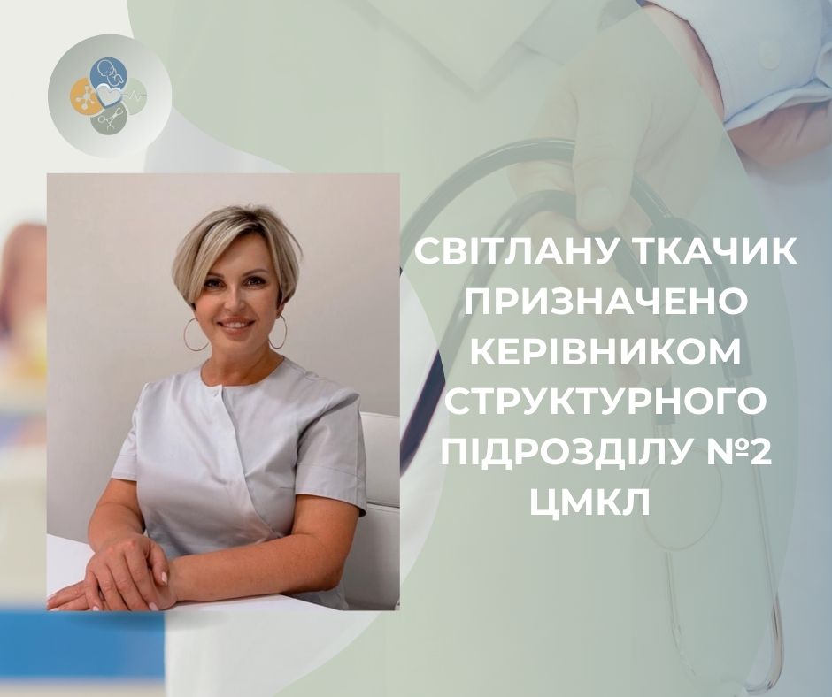 Керівницею структурного підрозділу №2 Центральної міської клінічної лікарні призначено Світлану Ткачик