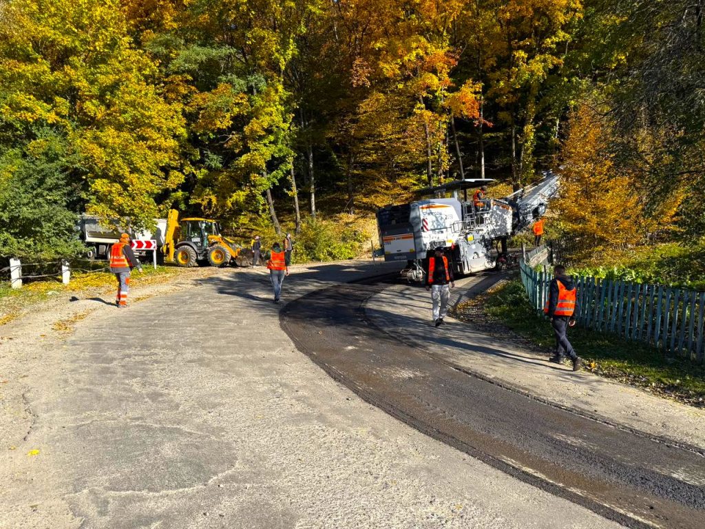За цей час стан покриття помітно погіршився — через інтенсивний рух транспорту, зокрема вантажного, на дорозі з’явилися глибокі тріщини та деформації. Точковий ямковий ремонт більше не давав ефекту, тому фахівці вирішили застосувати метод великих карт, який дозволяє відновити цілісність дорожнього покриття на значних площах.