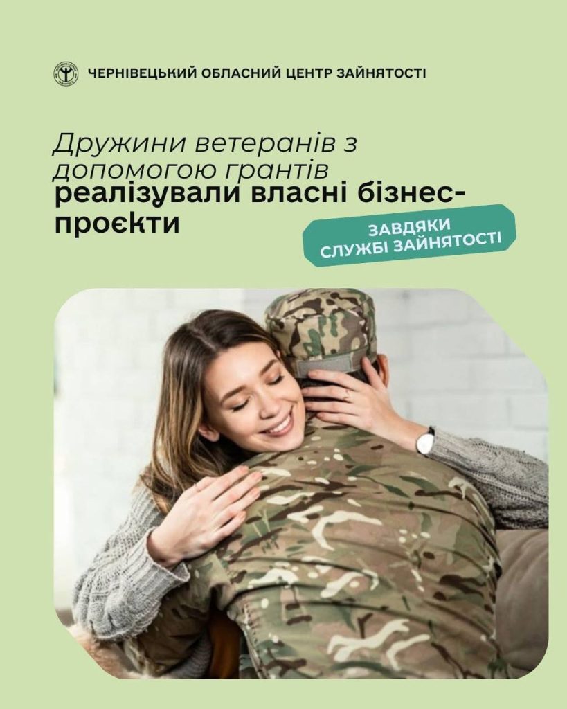 У Чернівецькій області у 2025 році переможцями програми «Грант для ветеранів та членів їх родин» стали 29 заявників. Серед них — 10 дружин учасників бойових дій, які реалізували власні бізнес-ідеї у сферах освіти, громадського харчування, реабілітації, виробництва та торгівлі.
