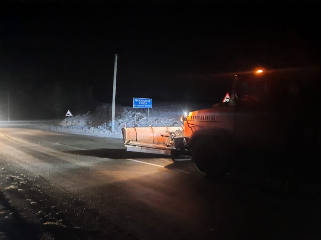 На Буковині вночі дорожники проводили протиожеледну обробку проїзної частини
