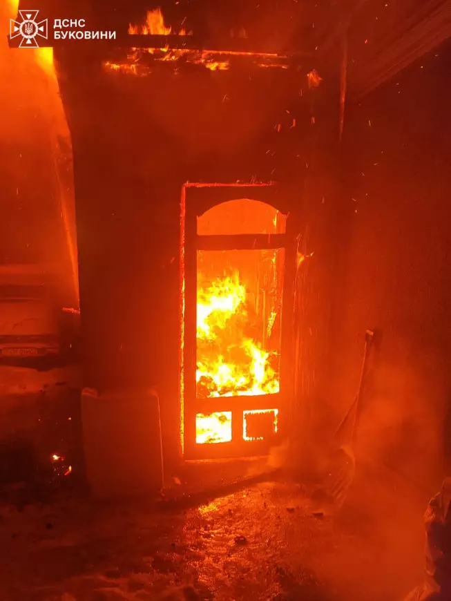 У місті Сторожинець Чернівецького району виникла пожежа в гаражі. Вогнем знищено майно на площі 20 м².