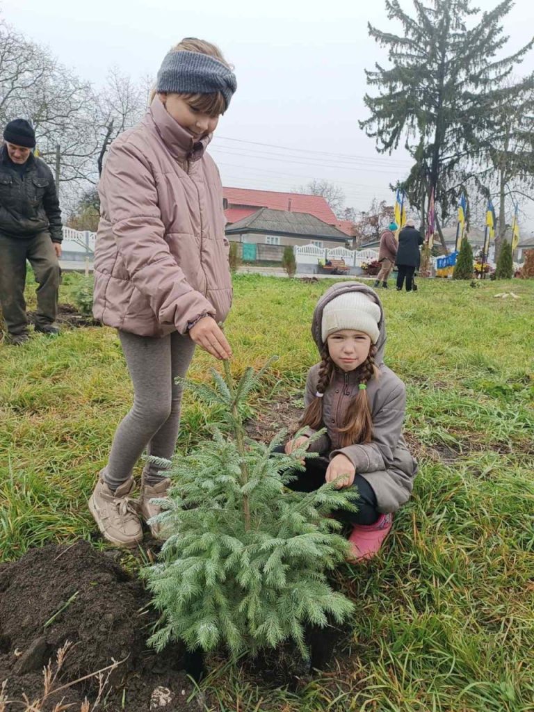Декоративні дерева та кущі для висадки придбали рідні військовослужбовців і небайдужі мешканці громади. До роботи долучилися волонтери, працівники старостинського округу, освітяни та жителі села.