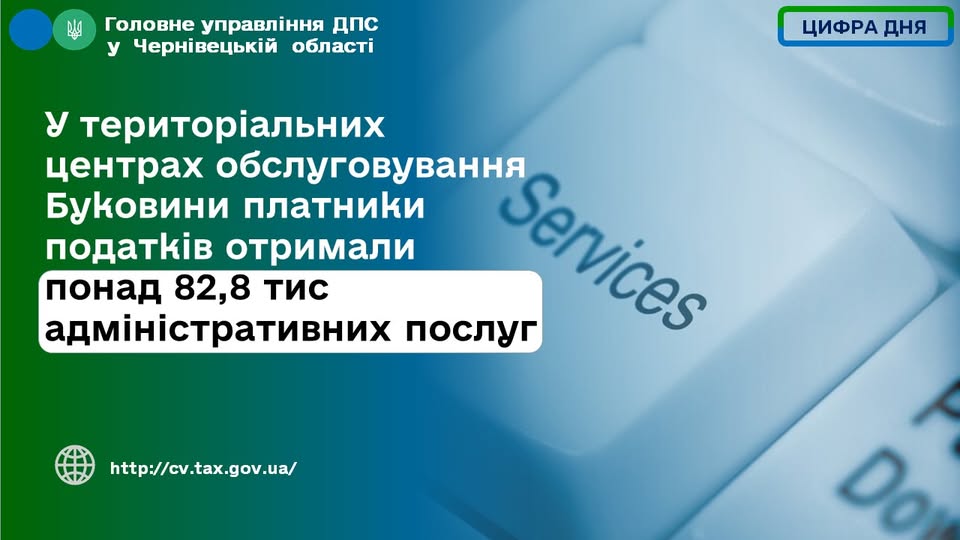 Упродовж трьох кварталів 2025 року в територіальних центрах обслуговування платників податків Чернівецької області надали 82,8 тис адміністративних послуг.