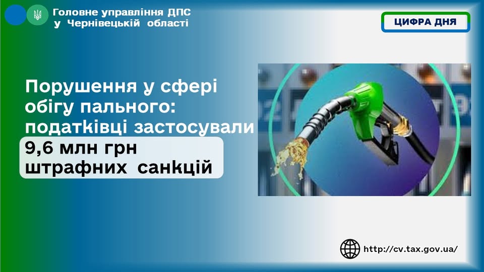 Податківці Буковини оштрафували порушників у сфері торгівлі пальним на понад 9,6 млн грн