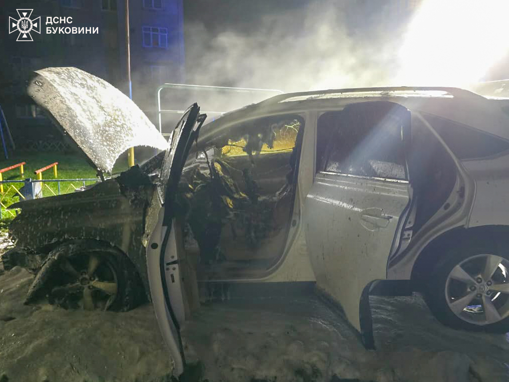 У Чернівцях власник повідомив про загоряння автомобіля LEXUS, припаркованого біля житлового будинку. На момент займання в авто нікого не було, вогонь поширився на площу близько 2 кв. м.