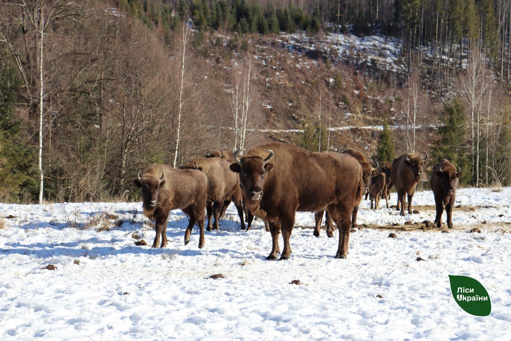 На цю зиму у лісництві заготовили для зубрів у вольєрі 17 тонн сіна, 5 тонн зерна кукурудзи і 4 тонни вівса. На підгодівлю придбали харчову крейду та сіль.