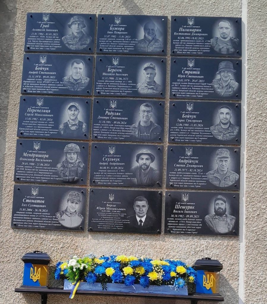 У Берегометській громаді на фасаді місцевого ліцею №1 встановили меморіальні дошки на честь 15 випускників, які загинули на війні за незалежність і територіальну цілісність України.