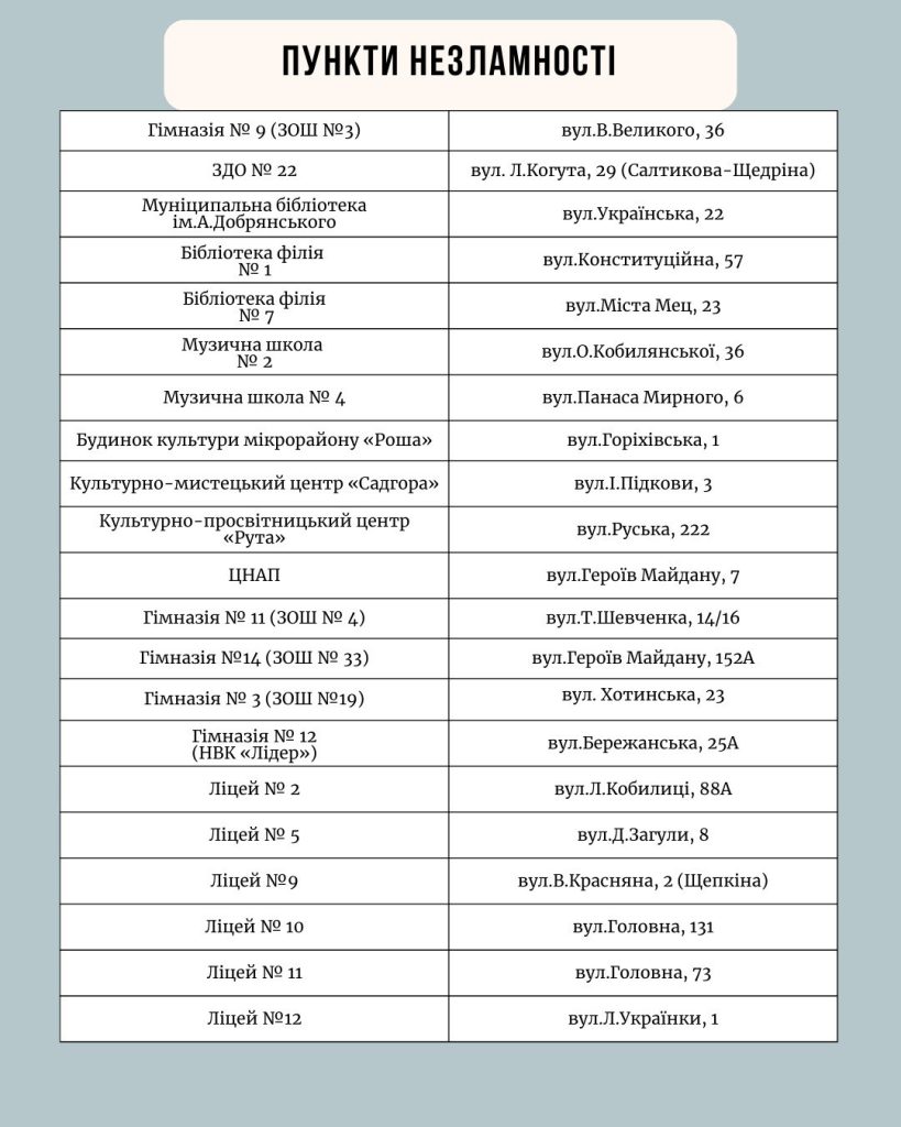 У Чернівцях цілодобово запрацювали понад 40 «Пунктів незламності»: перелік