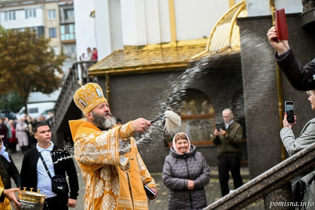Після завершення літургії митрополит Епіфаній освятив місце під майбутнє будівництво дзвіниці, привітав громаду з визначною подією та відзначив духовенство і благодійників церковними нагородами.