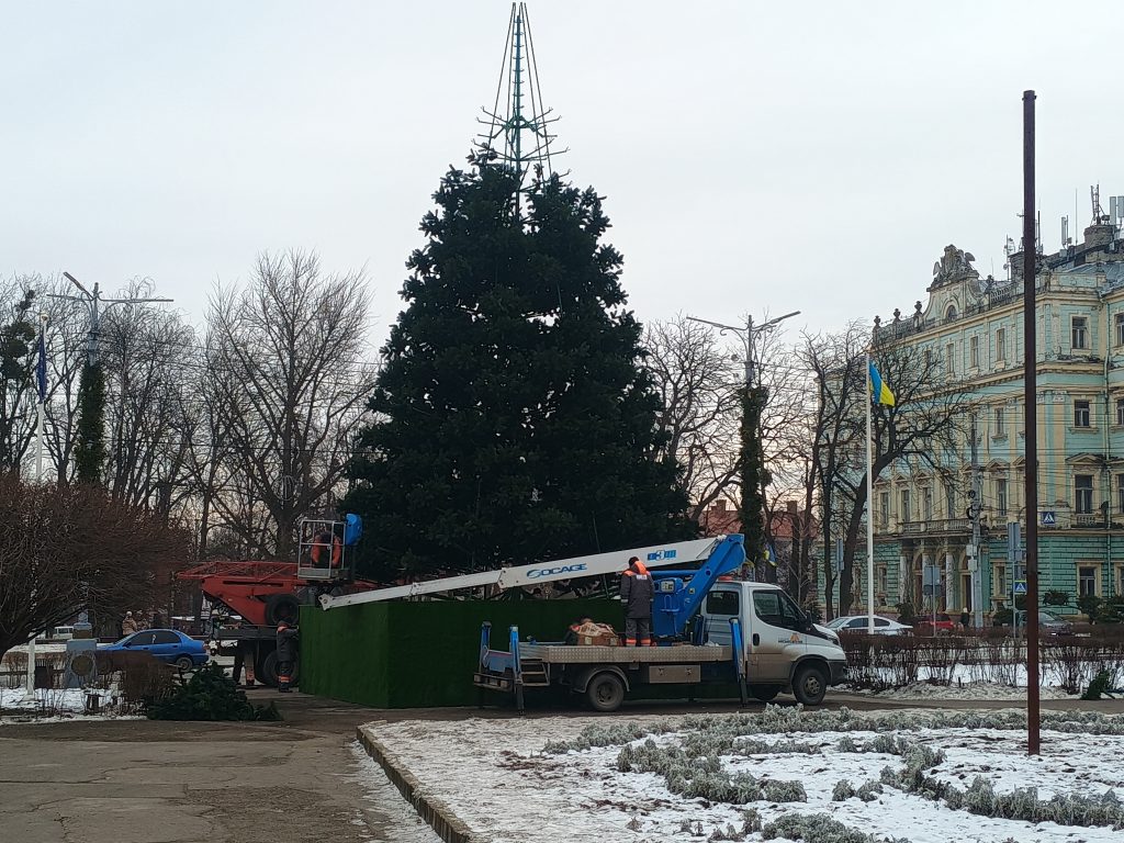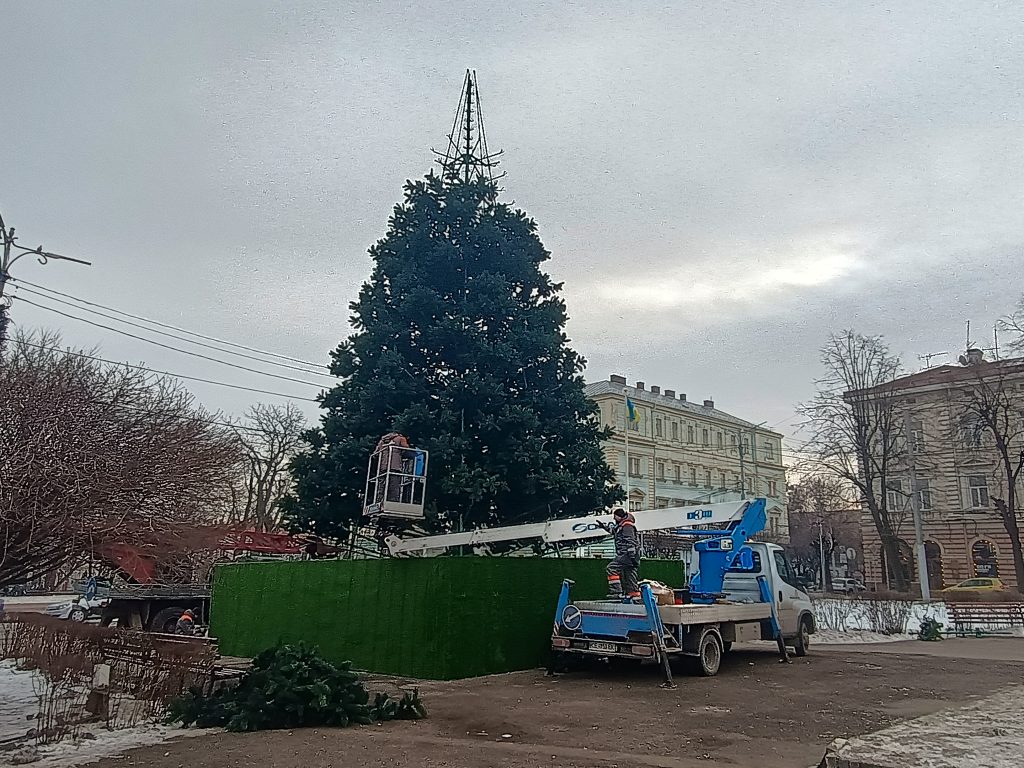 У Чернівцях на Соборній площі демонтовують новорічну ялинку