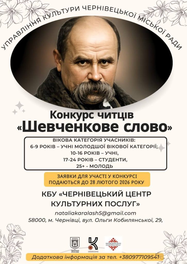 У Чернівцях 6 березня відбудеться конкурс читців «Шевченкове слово». Подати заявки на участь охочі можуть до 28 лютого.