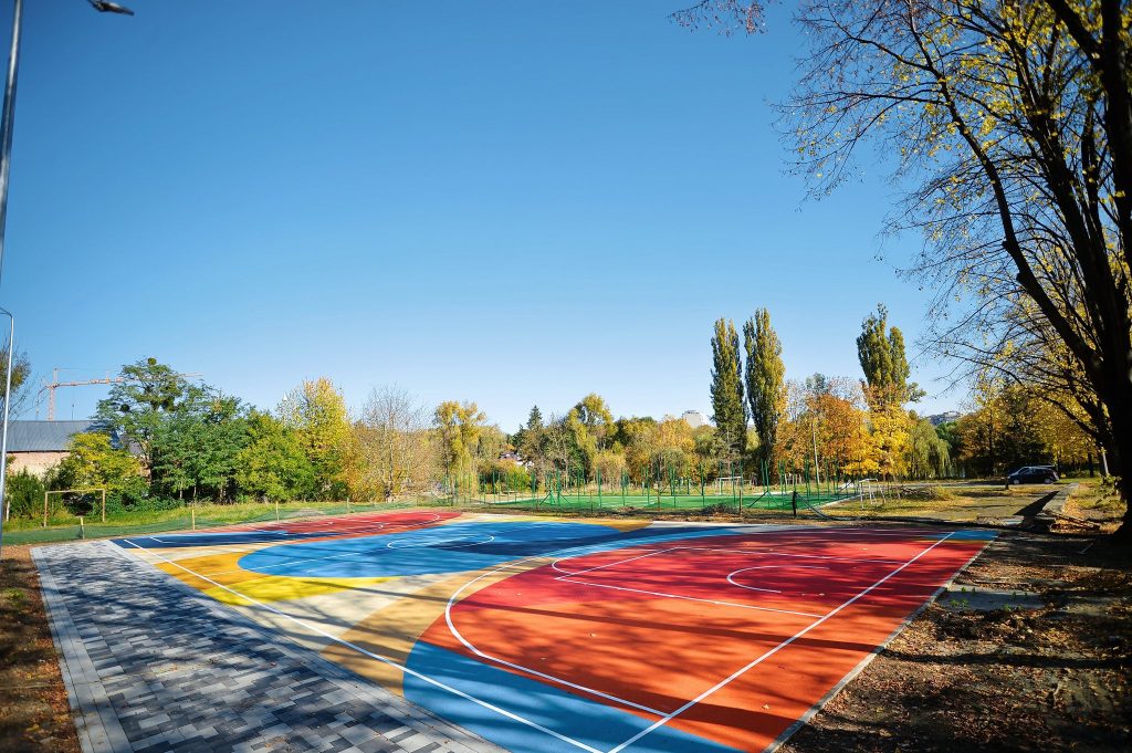 За кошти міського бюджету у ліцеї №18 тут облаштовують оновлену спортивну зону — багатофункціональне поле з сучасним покриттям і розміткою для різних видів спорту.