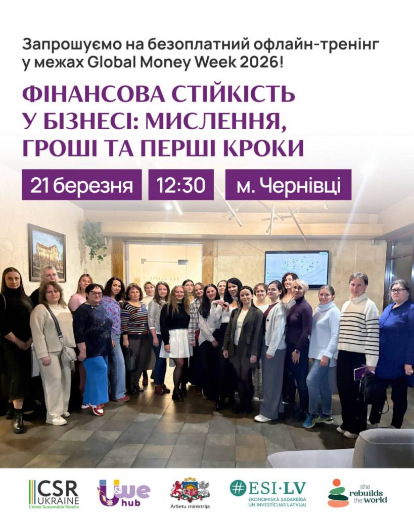 У Чернівцях жінок-підприємиць запрошують на безоплатний тренінг у межах Global Money Week 2026. Захід відбудеться 21 березня в офлайн-форматі.