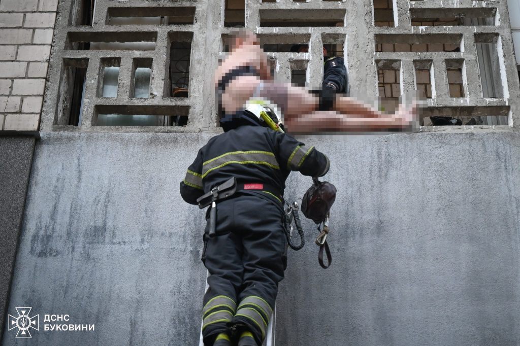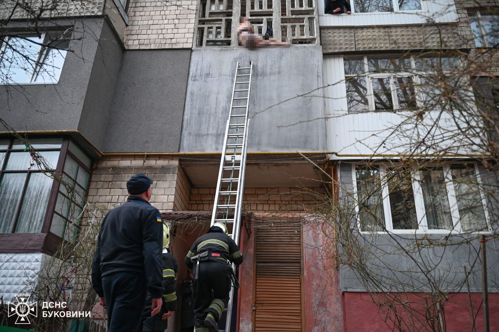 У Чернівцях рятувальники спустили на землю оголеного чоловіка з третього поверху
