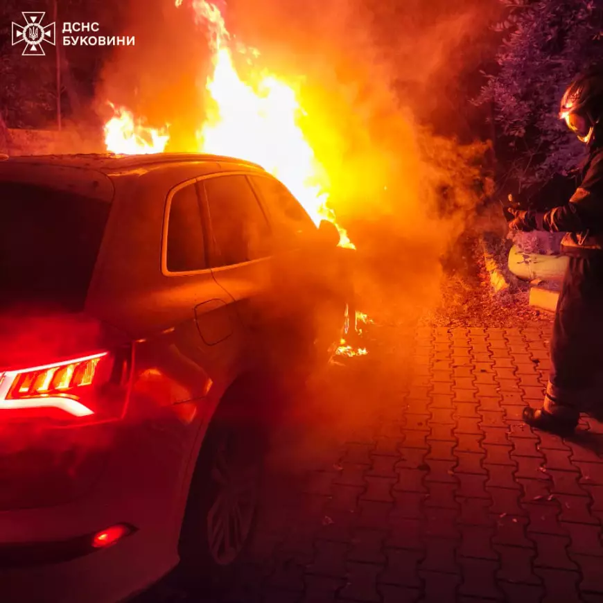 У Чернівцях ввечері 2 жовтня біля житлового будинку спалахнув автомобіль Audi Q5. На момент займання у салоні нікого не було. Вогонь поширився на площу близько 3 кв. м та пошкодив поруч припаркований Mercedes-Benz.