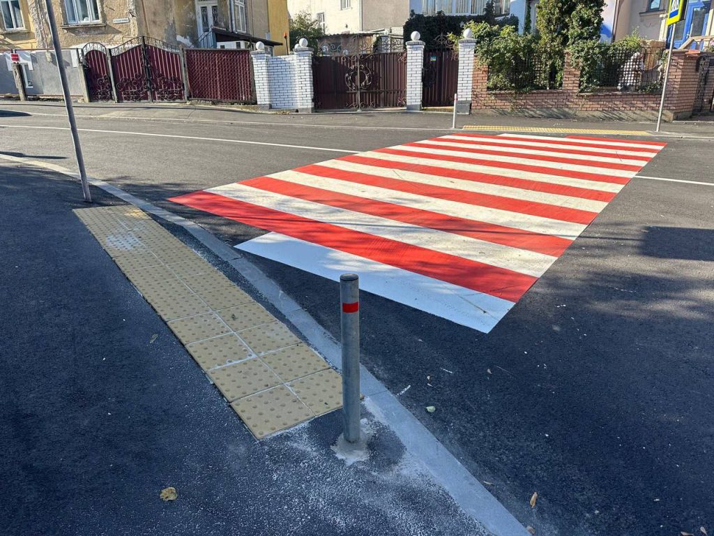 Для безпеки пішоходів облаштували понижені бордюри та тактильну плитку на переходах, що особливо важливо для людей із порушеннями зору. Також відремонтували частину суміжної вулиці Едуарда Тангля, зокрема пішохідний перехід.