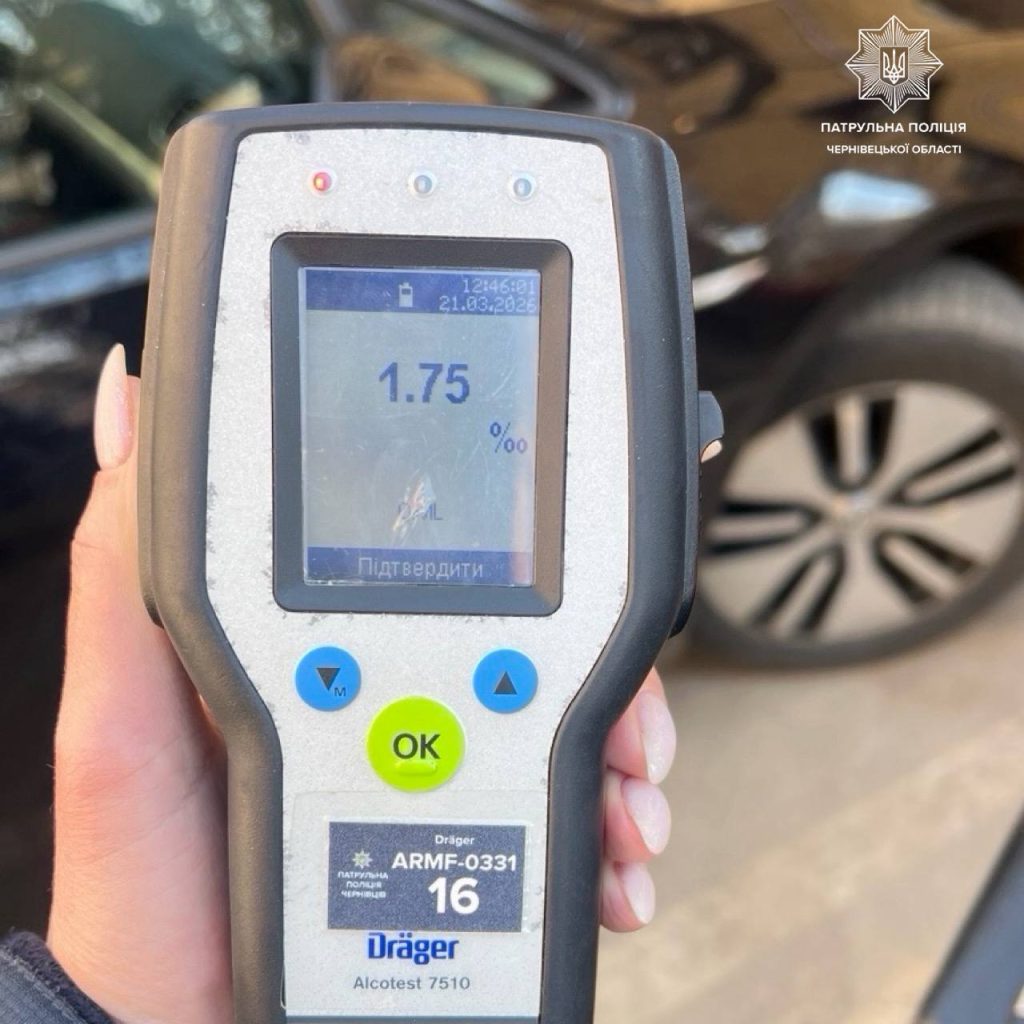 Близько опівдня, на вулиці Адама Міцкевича, у Чернівцях патрульні виявили водія, який керував автомобілем у стані алкогольного сп’яніння. Рівень алкоголю в його організмі перевищував допустиму норму більш ніж у вісім разів.