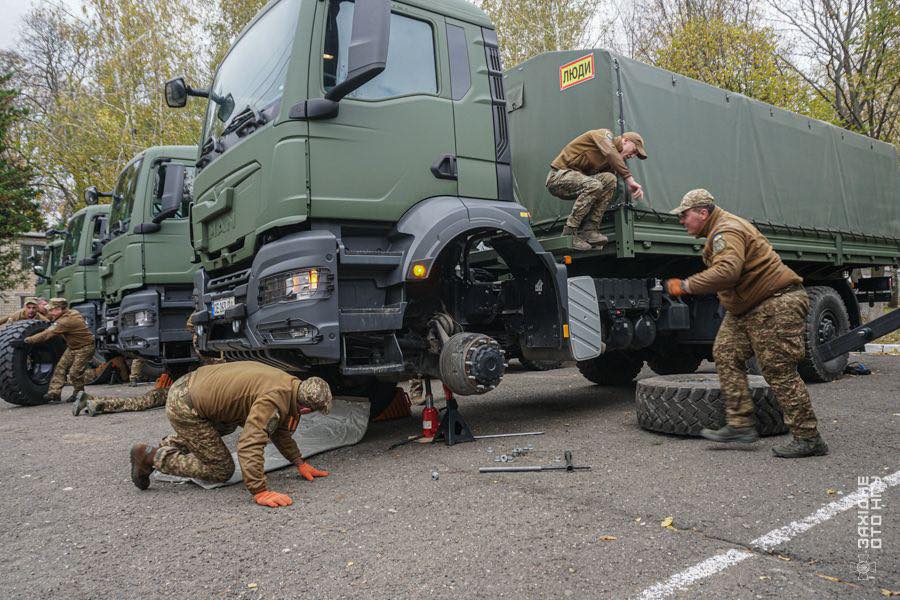 Сьогодні Олександр разом з побратимами з’ясовували, хто швидше полагодить вантажівку і замінить колесо. За якістю роботи слідкувало компетентне і неупереджене журі.