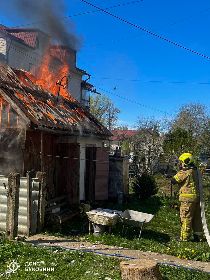 У Сторожинці загорілася господарська будівля площею 30 кв м— вогонь знищив покрівлю, дрова та майно. Причина – необережність під час куріння.