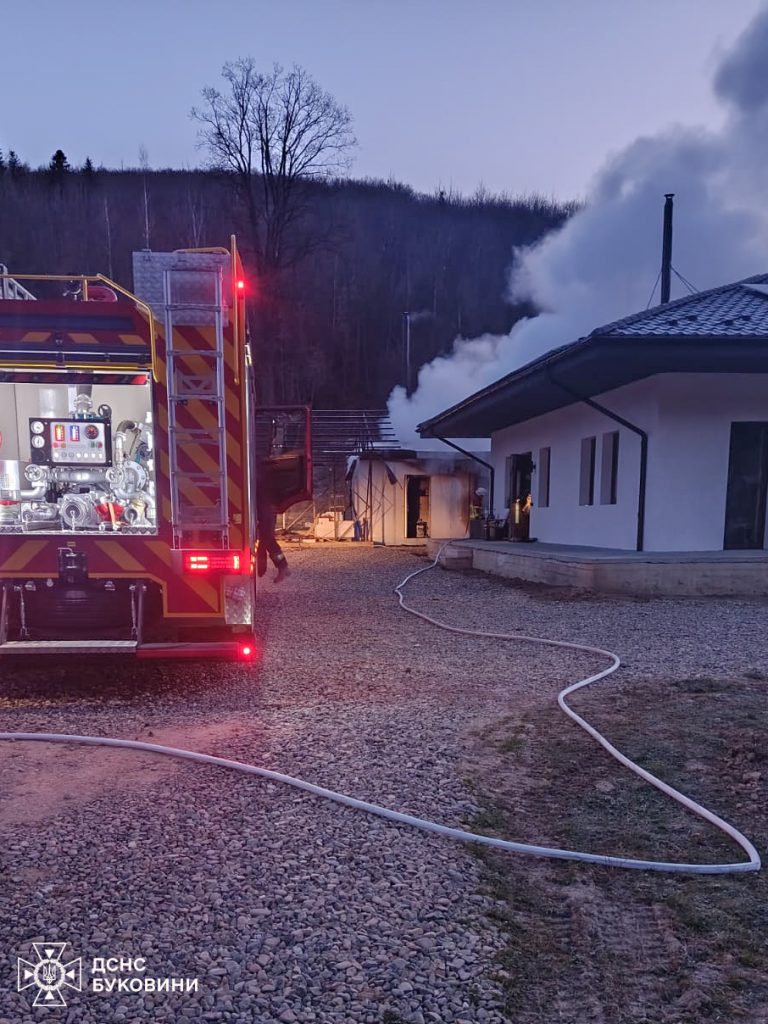 Також пожежа у господарській будівлі сталася у селищі Берегомет Вижницького району. Надзвичайники ліквідували її на площі 35 кв м. Вогонь пошкодив покрівлю, стіну, твердопаливний котел, а також знищив дрова та господарське майно. Причиною стало коротке замикання електромережі.