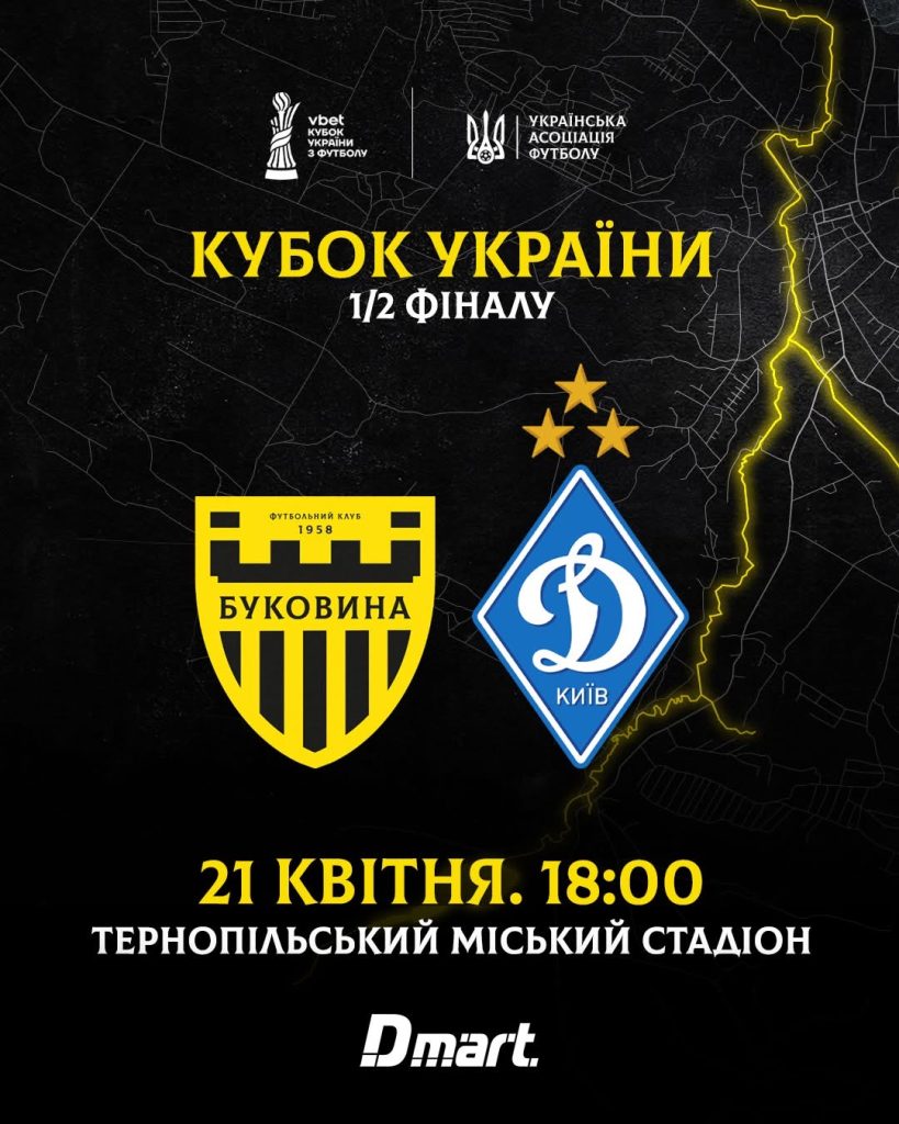 У вівторок, 21 квітня, у Тернополі відбудеться півфінал Кубка України між ФК «Буковина» та «Динамо».