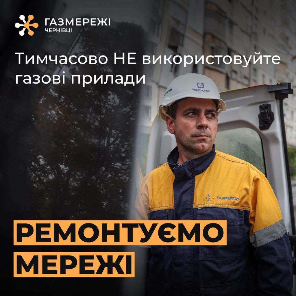 Споживачів просять перекрити крани перед газовими приладами та не користуватися газом до завершення робіт і відновлення розподілу.