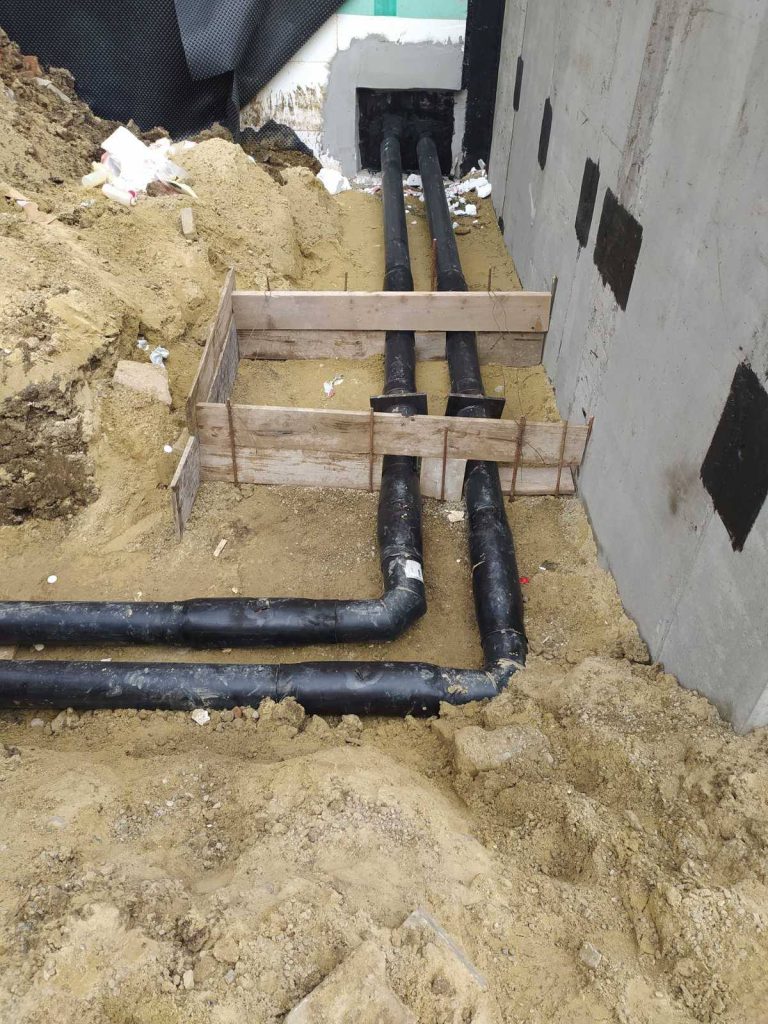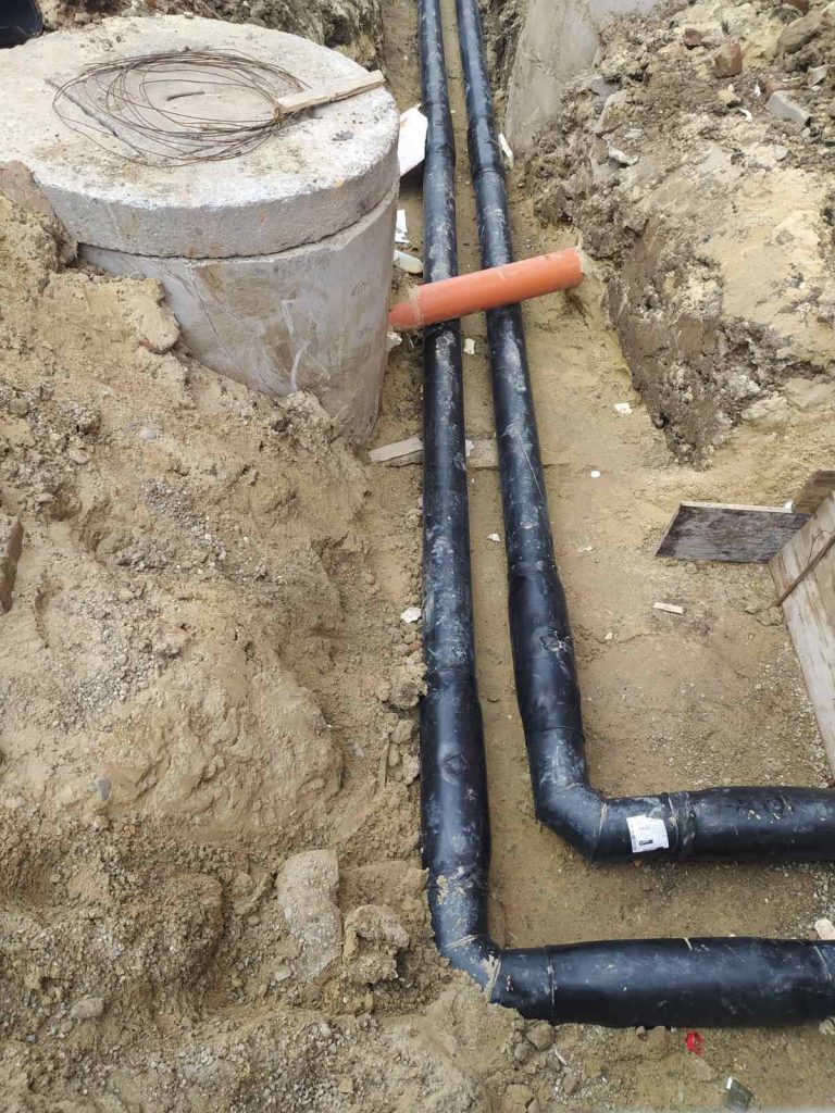 Фахівці працюють на вводі до багатоповерхівки на вулиці Скальда. Незабаром скоро 100 метрів старих і зношених труб замінять на нові, попередньоізольовані.