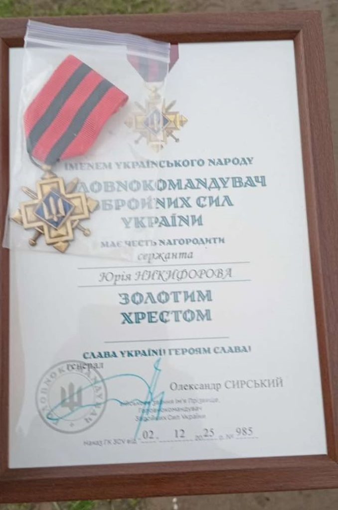 Військовослужбовця Збройних сил України Юрія Никифорова, жителя Сокирянщини, удостоєно однієї з найпочесніших нагород ЗСУ — відзнаки «Золотий хрест» від Головнокомандувача Збройних сил України.